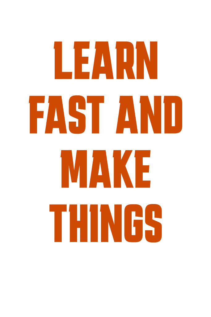 Maybe one day I’ll write the long thoughtful post. Maybe, this is a more meaningful contribution anyway. Learn fast and make things.